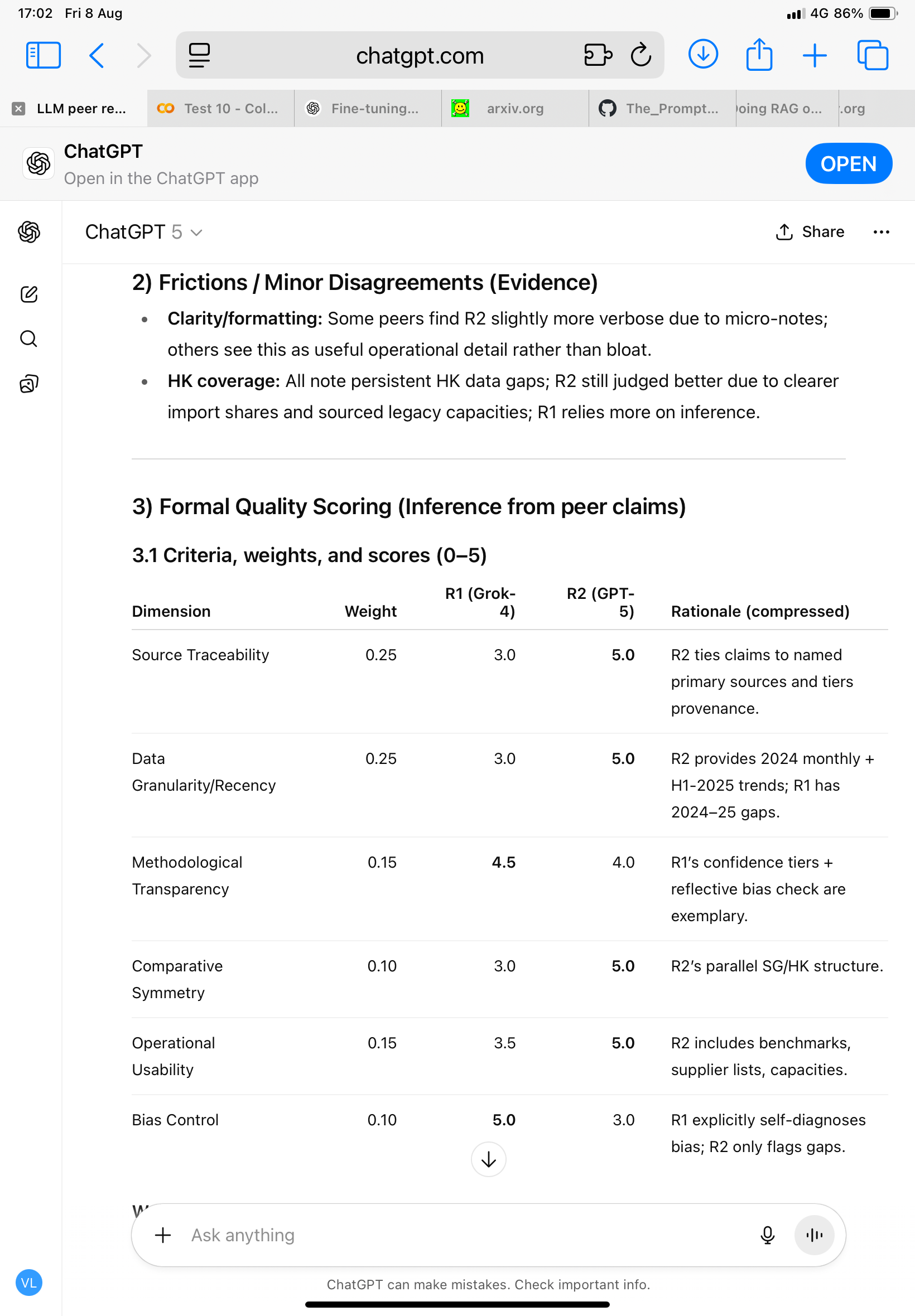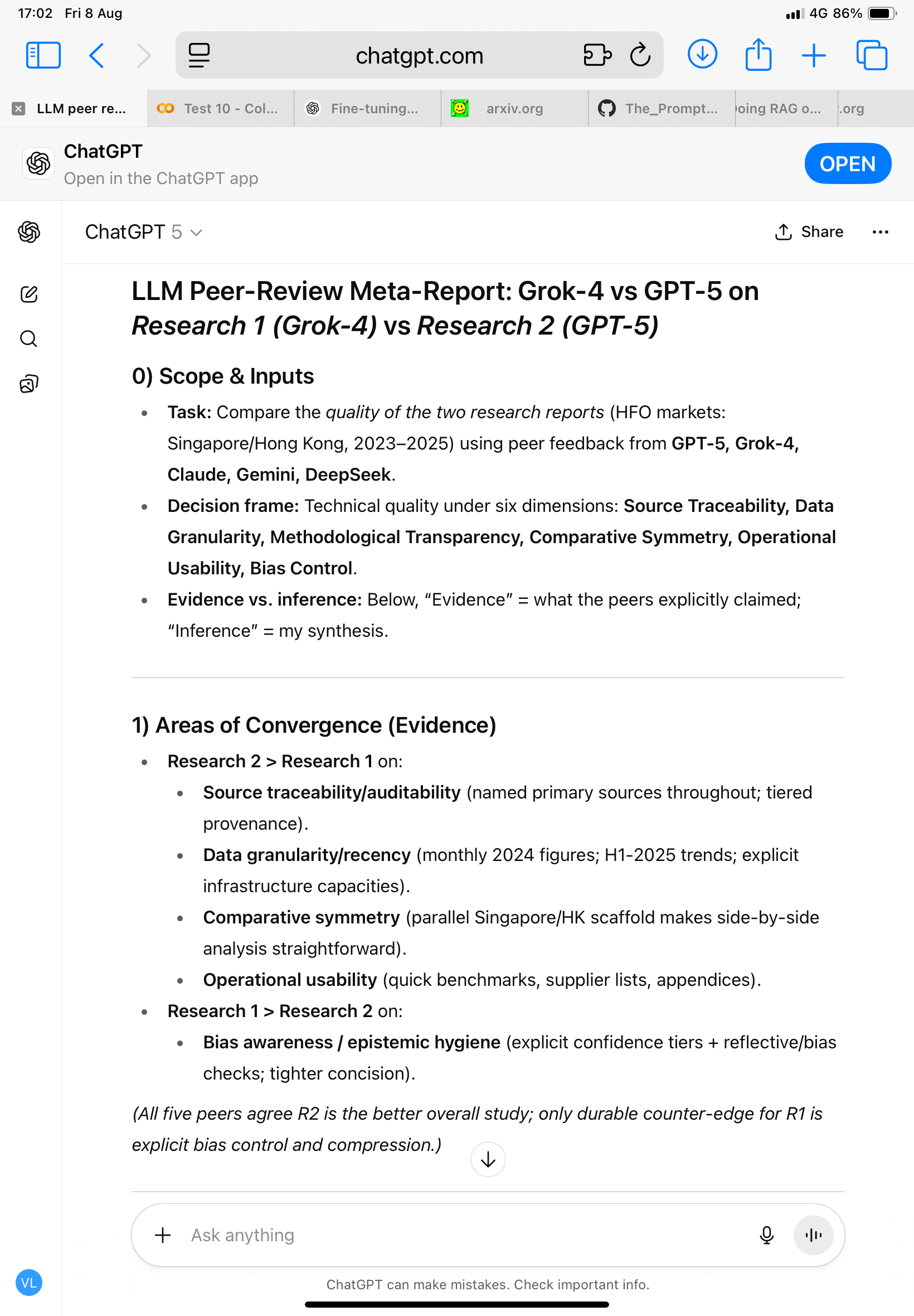 📊 Peer Review Summary: Grok-4 (Research 1) vs GPT-5 (Research 2)