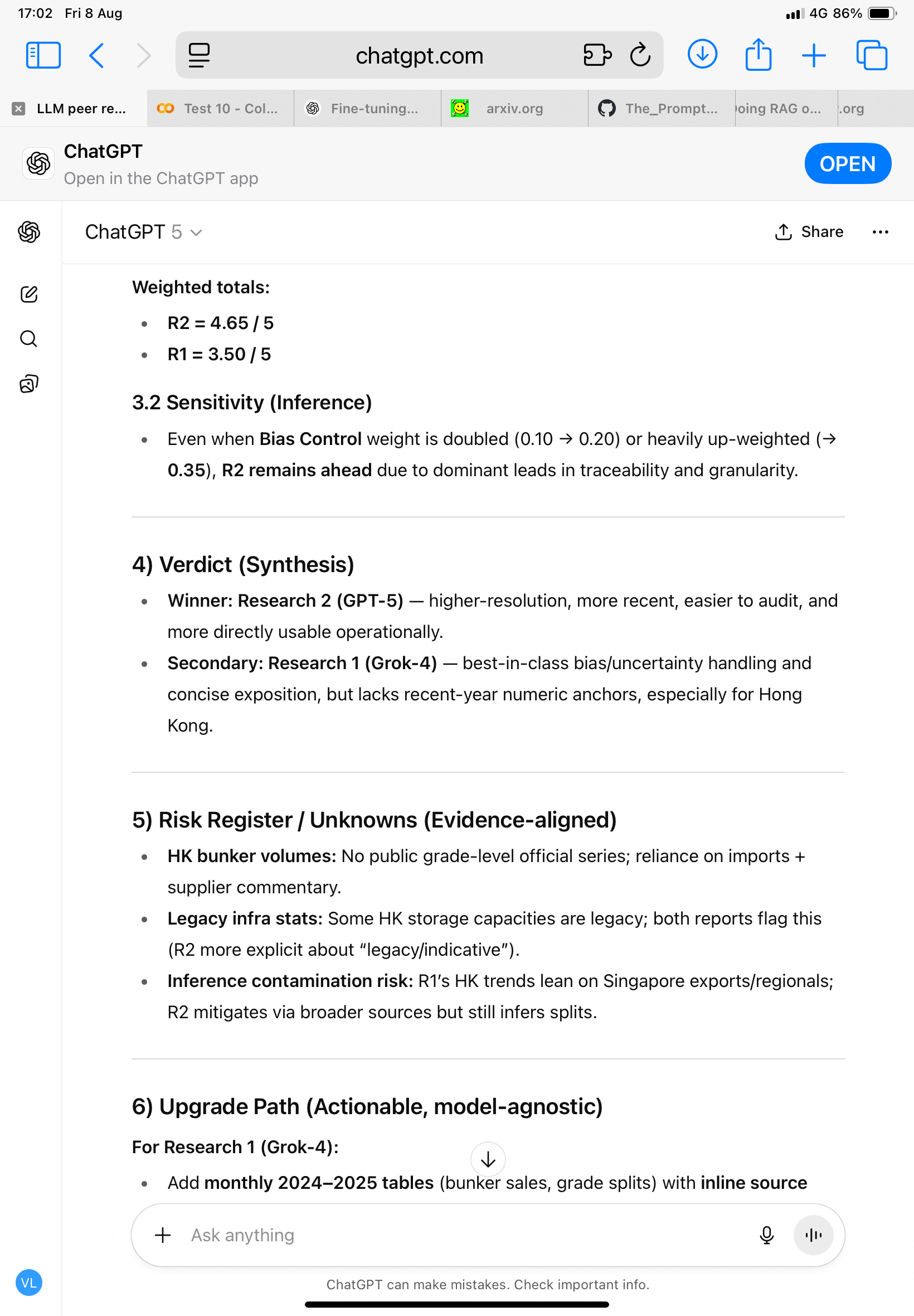 Items evaluated: Research 1 (Grok 4) & Research 2 (GPT-5)