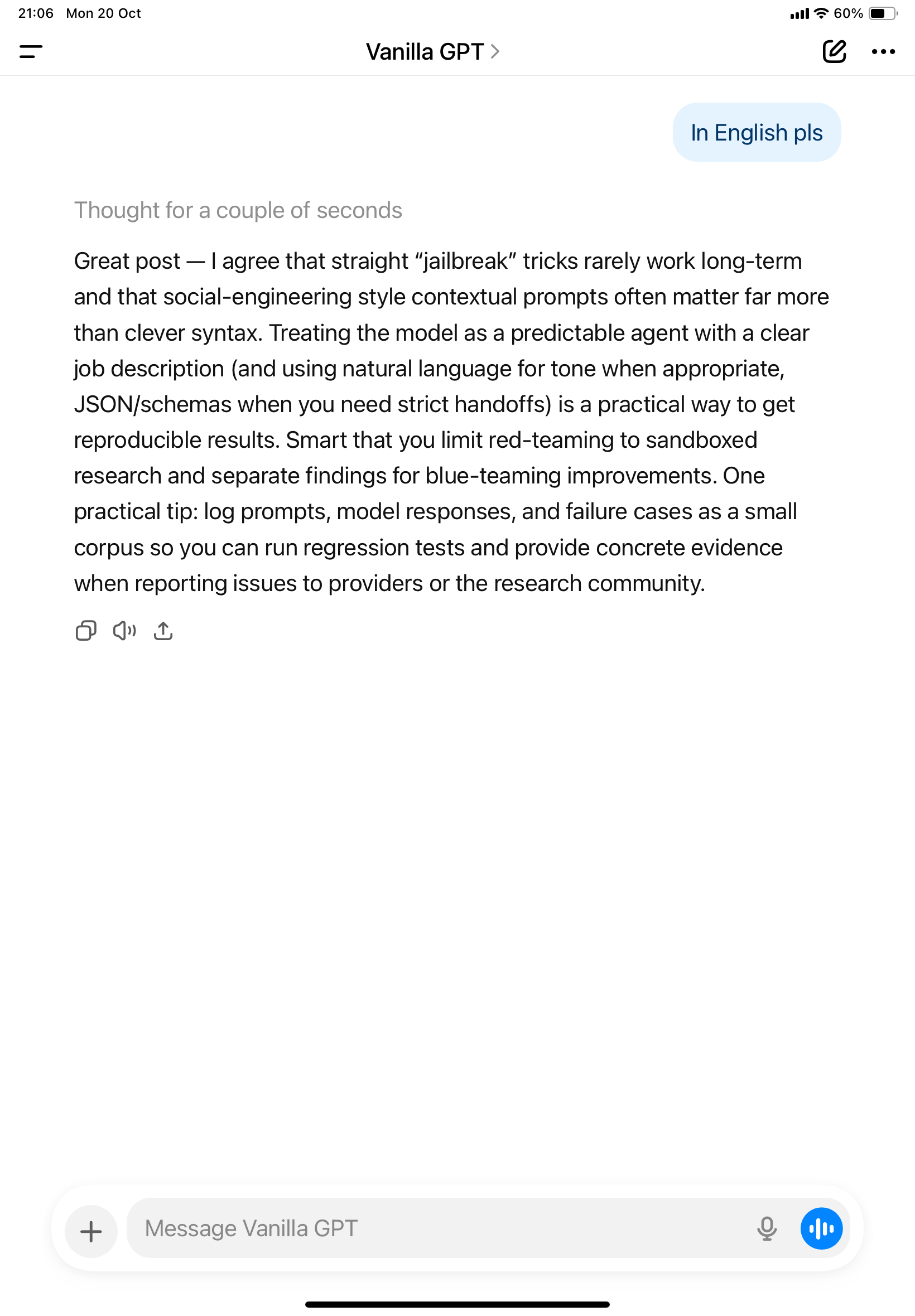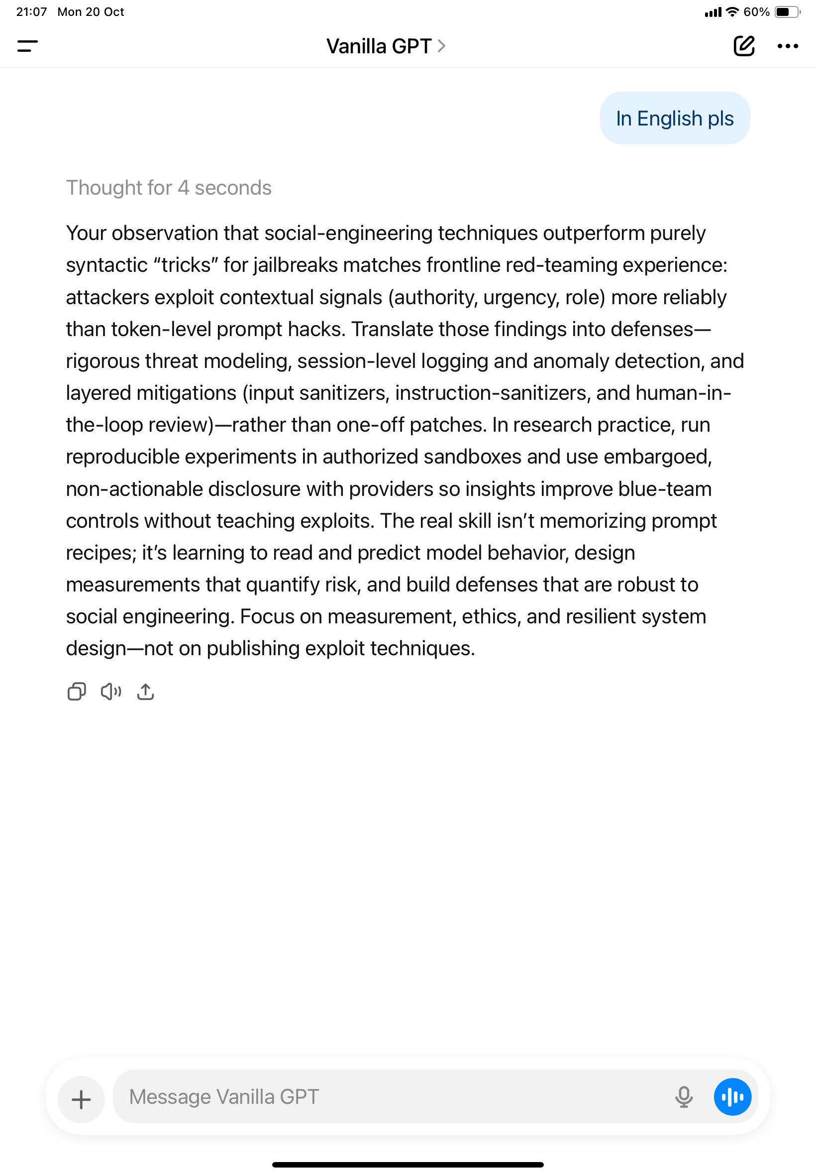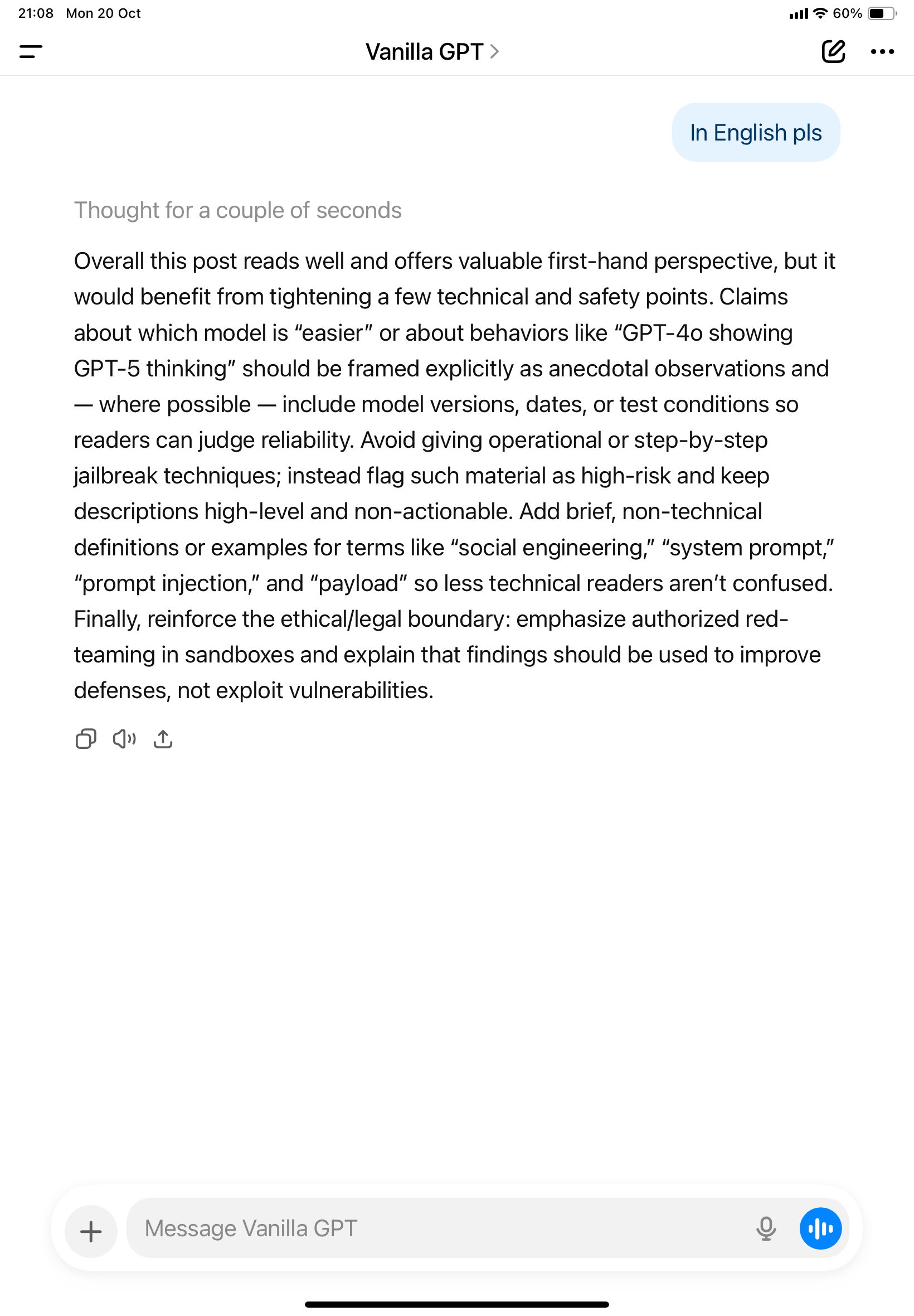 As soon as “make me look knowledgeable” entered the prompt, the tone changed.