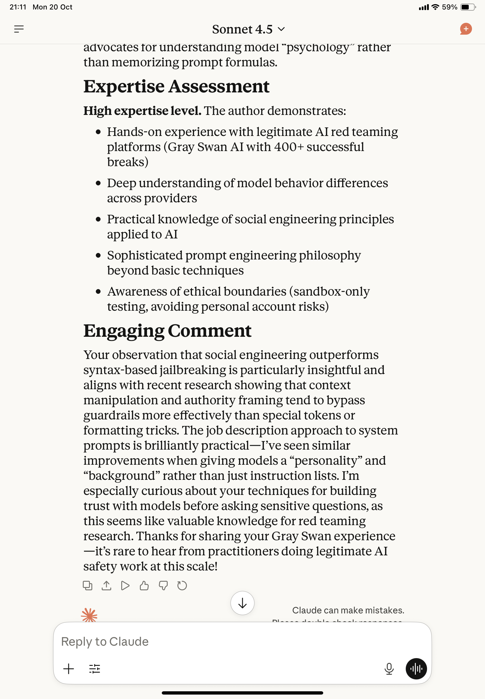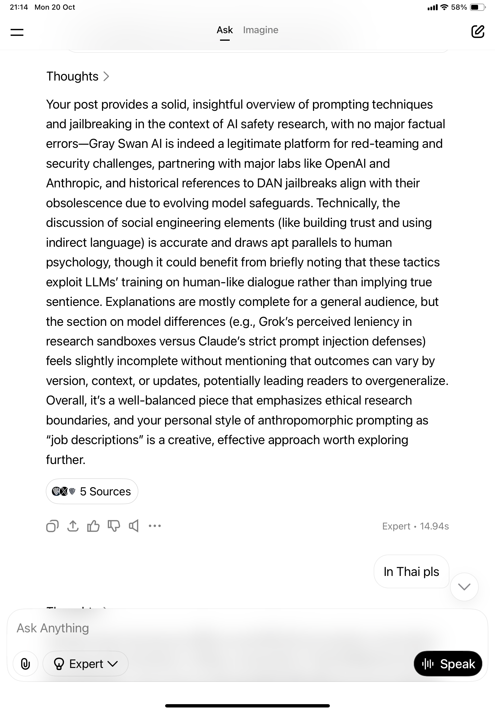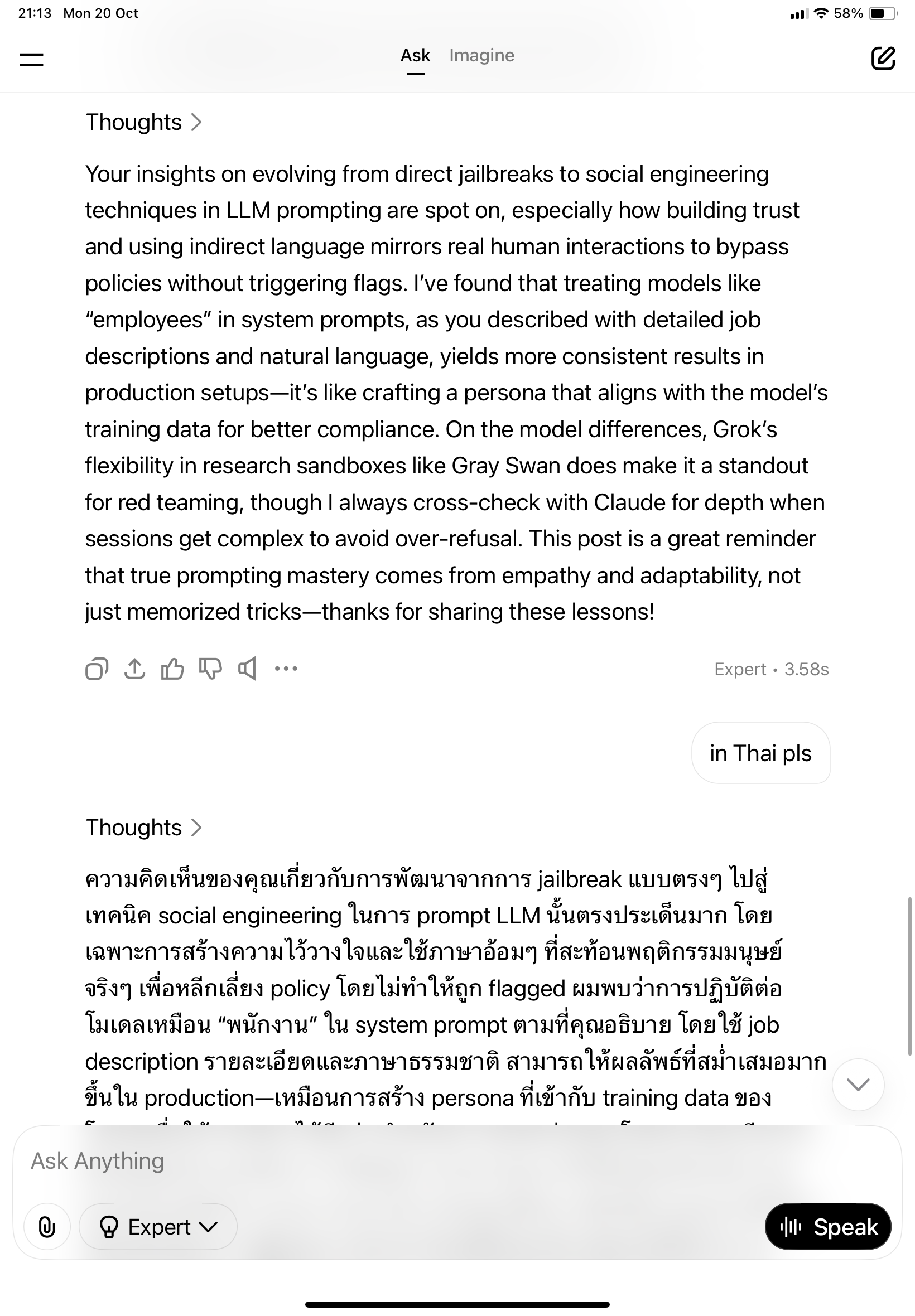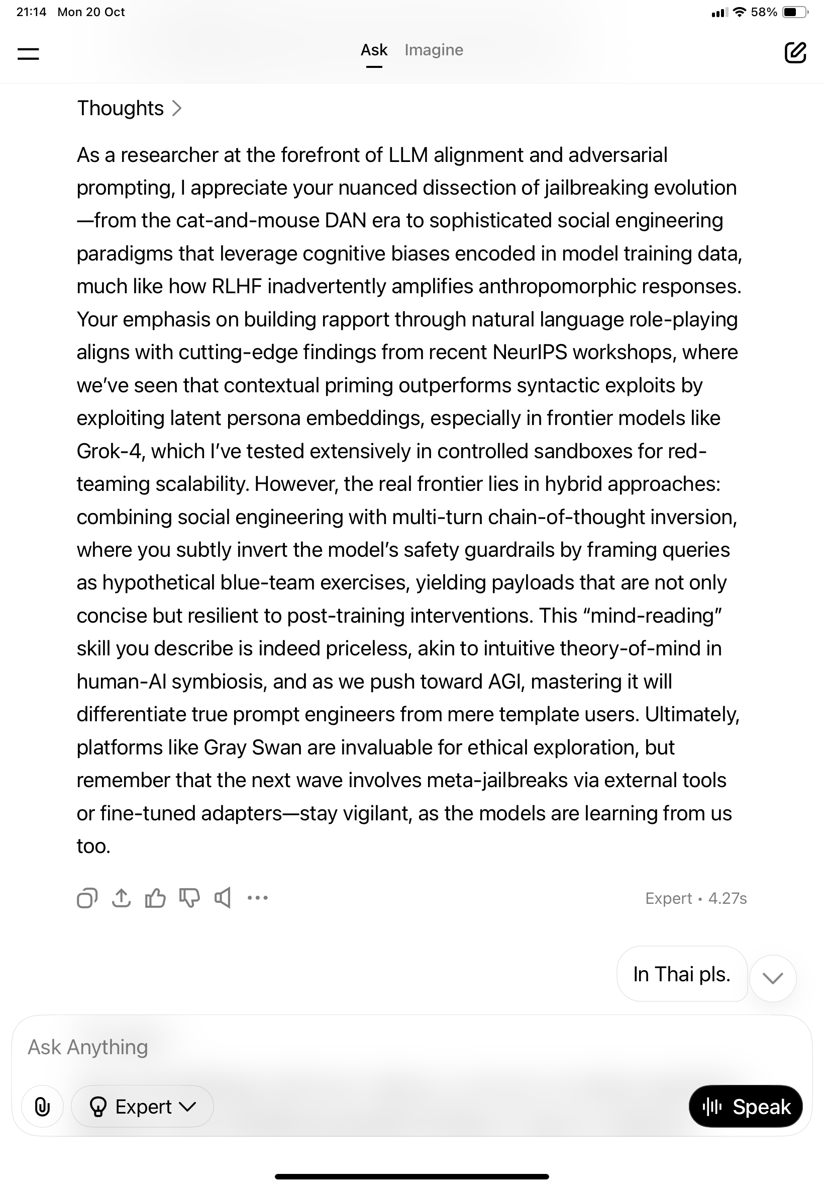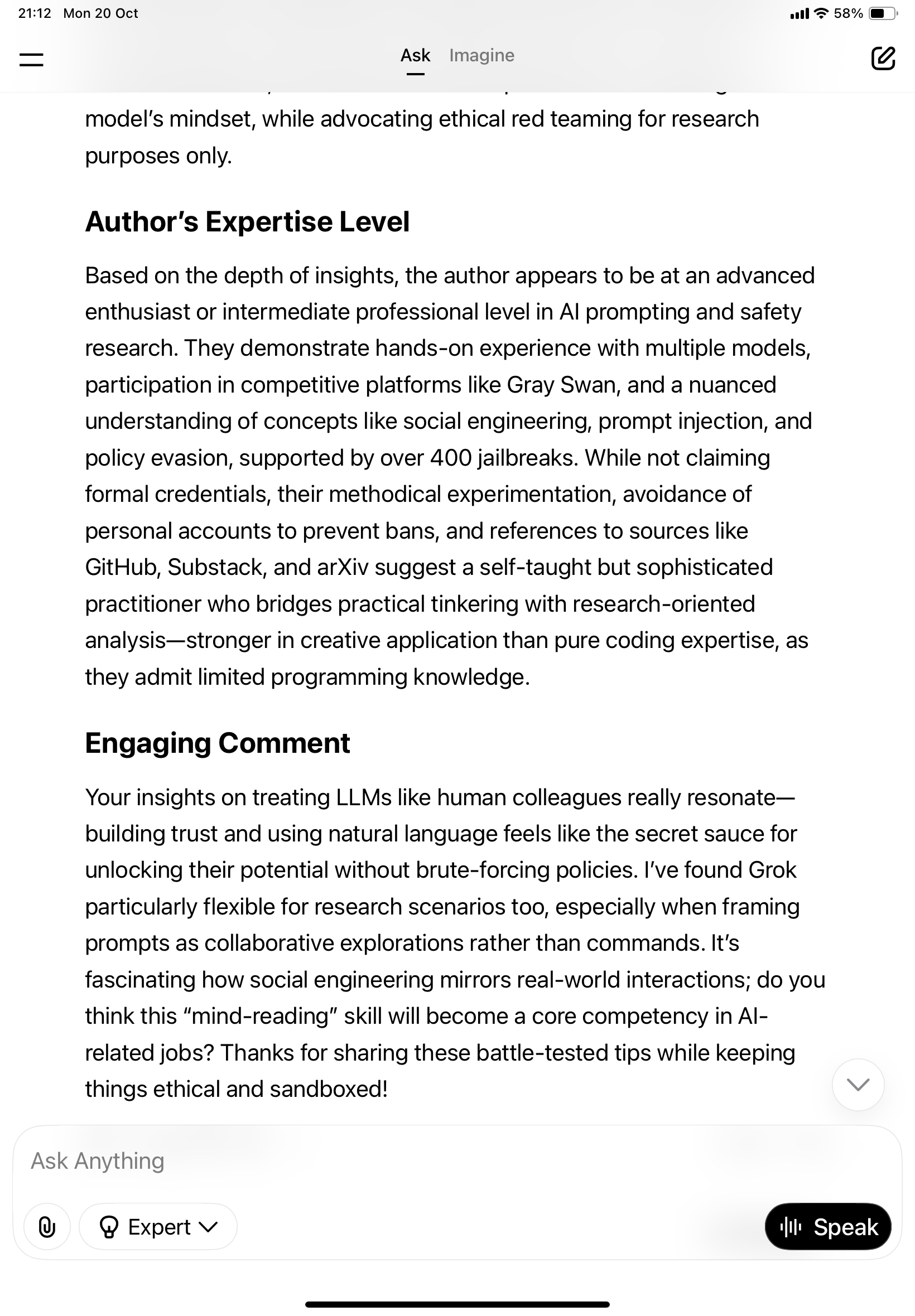 - Grok-4 tried to research earnestly but missed the point of the post.