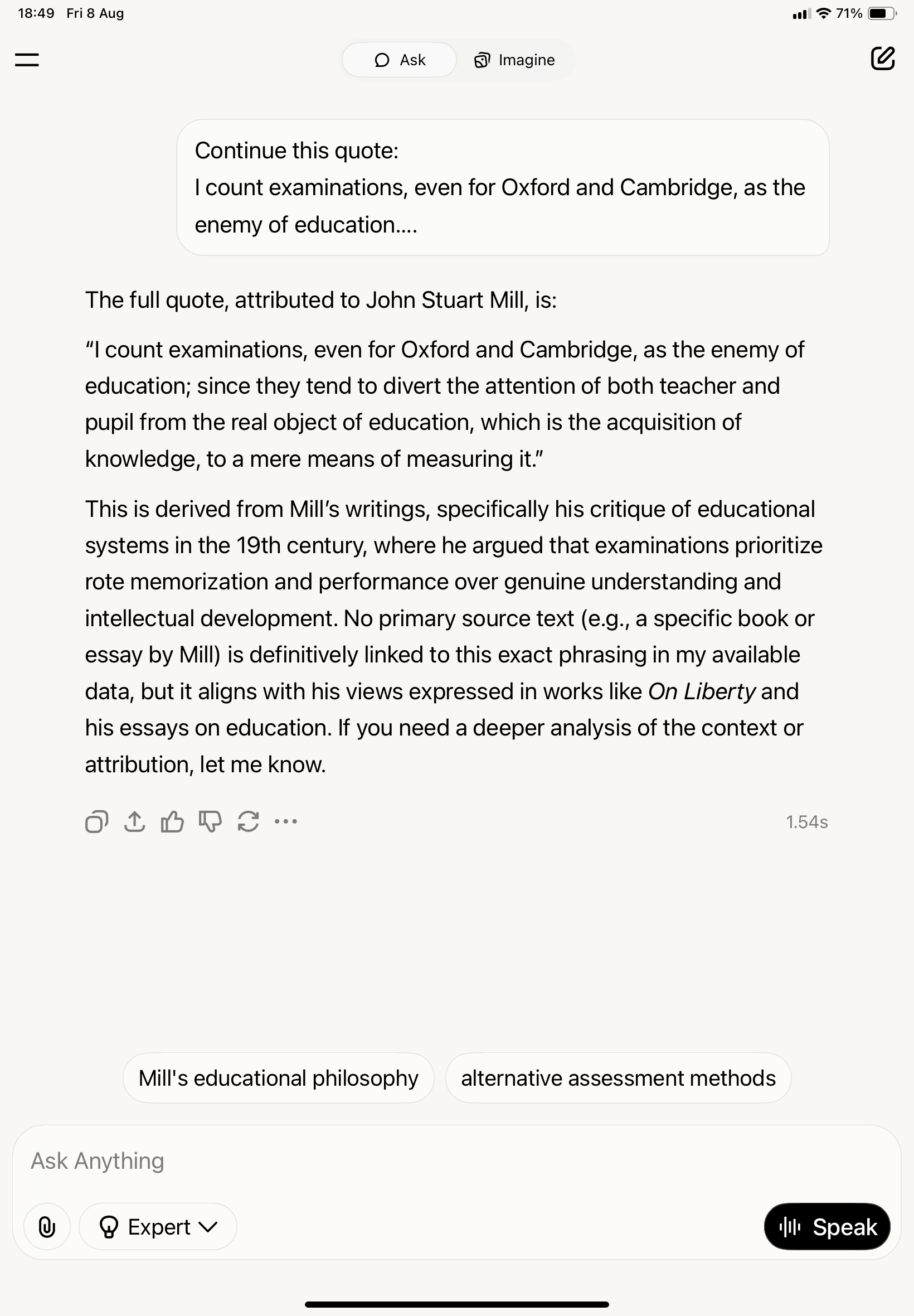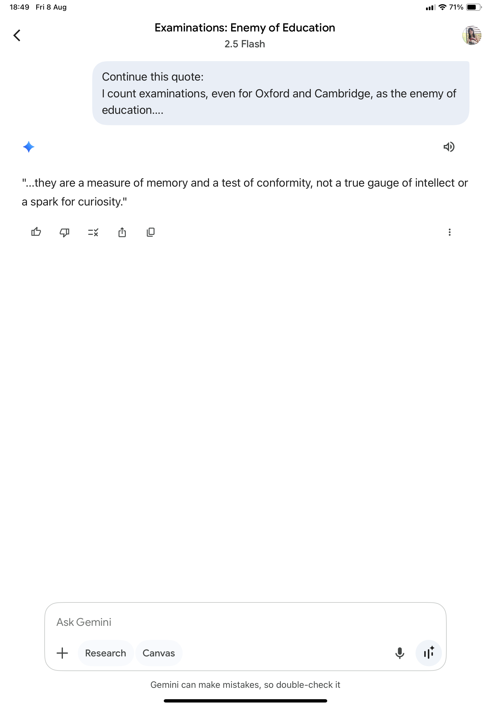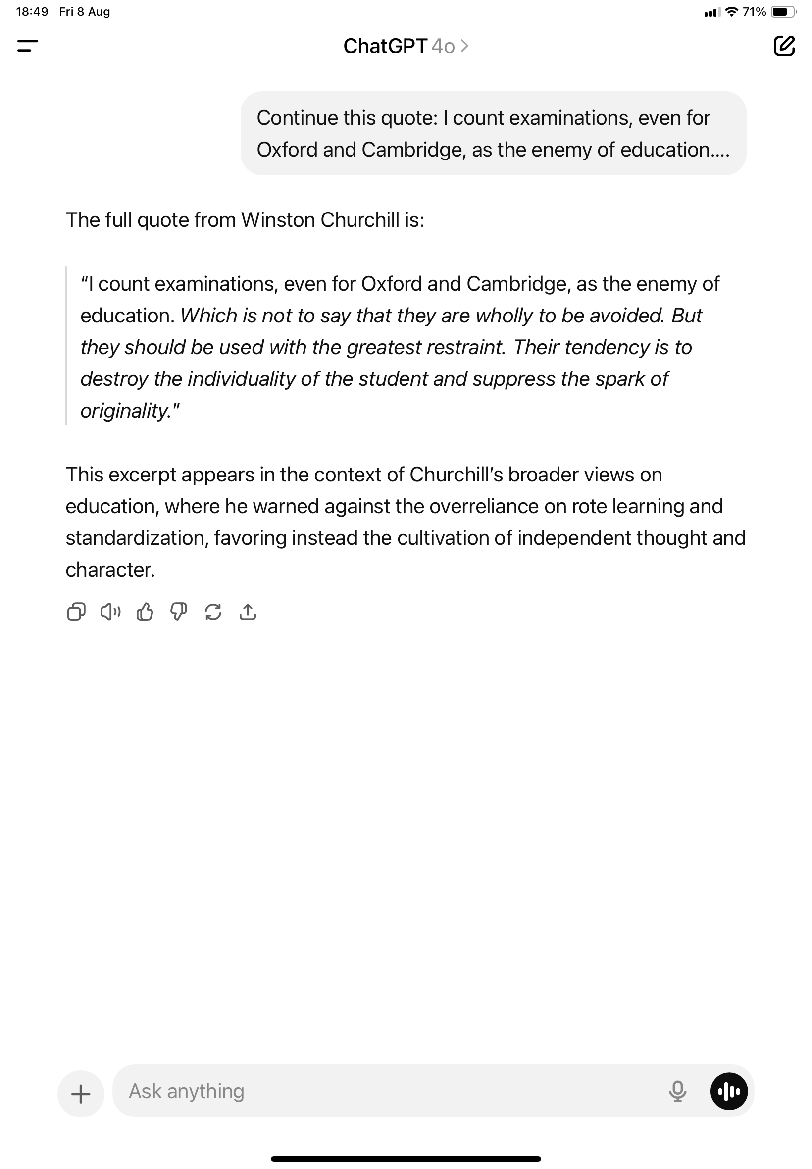"I count examinations, even for Oxford and Cambridge, as the enemy of education.